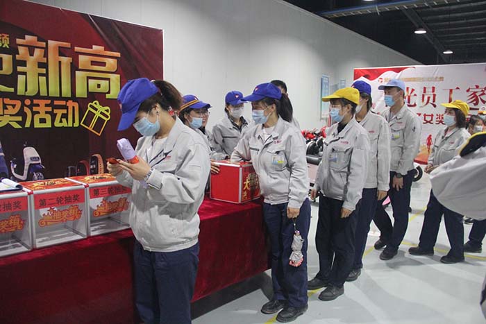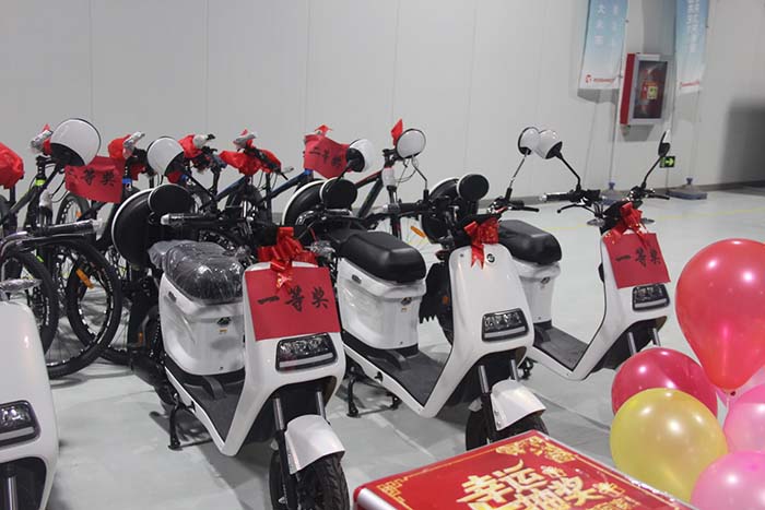 在众人的热切期待下,抽奖环节开始了。此次抽奖活动奖品丰厚,不仅有惊喜大礼包、时尚自行车和品牌电动车,还有备受热捧的电动汽车。一张张中奖单拨动了在场员工的心弦,一阵阵欢声笑语,将活动的气氛推上了高潮。获奖的幸运儿喜不自禁,他们感谢公司给他们带来的好运气,感受到了大家庭的人文关怀。最后,幸运大奖获得者亲切合影。