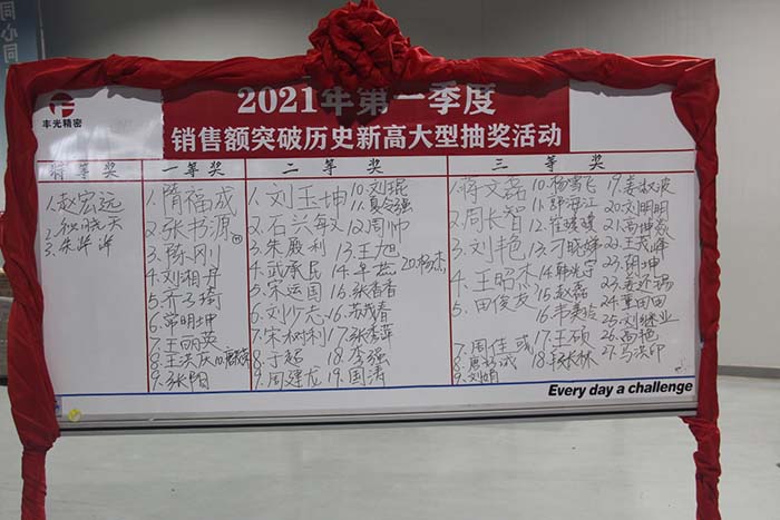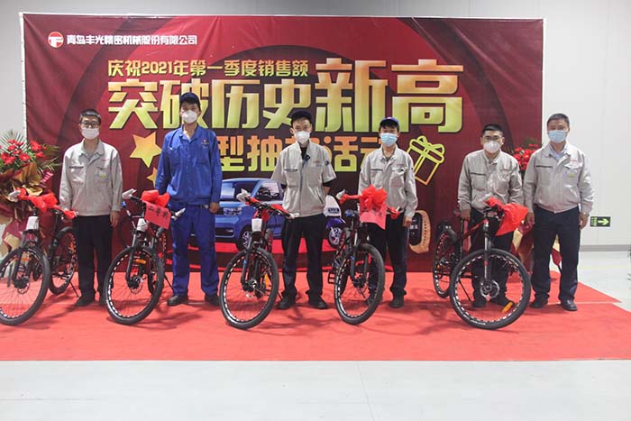 为庆祝2021年第一季度销售额突破历史新高,2021年5月12日,青岛丰光精密机械股份有限公司开展丰光员工家庭日暨大型抽奖活动,旨在通过活动,感谢丰光员工的辛勤付出,亦增进家属对企业的了解和认可,增强家庭幸福感和凝聚力。本次活动共吸引了五百多名员工及其家属参与。